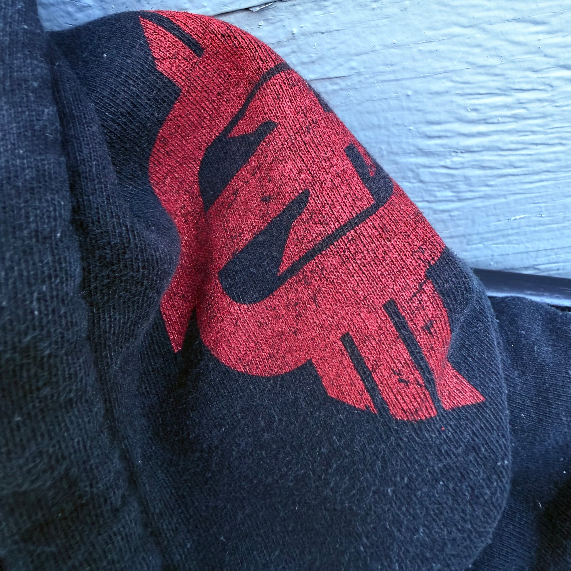 Rare mid-2000s Tapout x Kimbo Slice hoodie, size XL, featuring a classic black base with bold red prints front and back. Oversized gothic lettering, skull-and-fist artwork, and heavy detail graphics make this a standout from Tapout’s Black Label line. A true piece of vintage MMA clothing from the era when fight culture was raw and unapologetic. Extremely rare and hard to find in this style and condition — a must-have for collectors or anyone repping the roots of MMA.